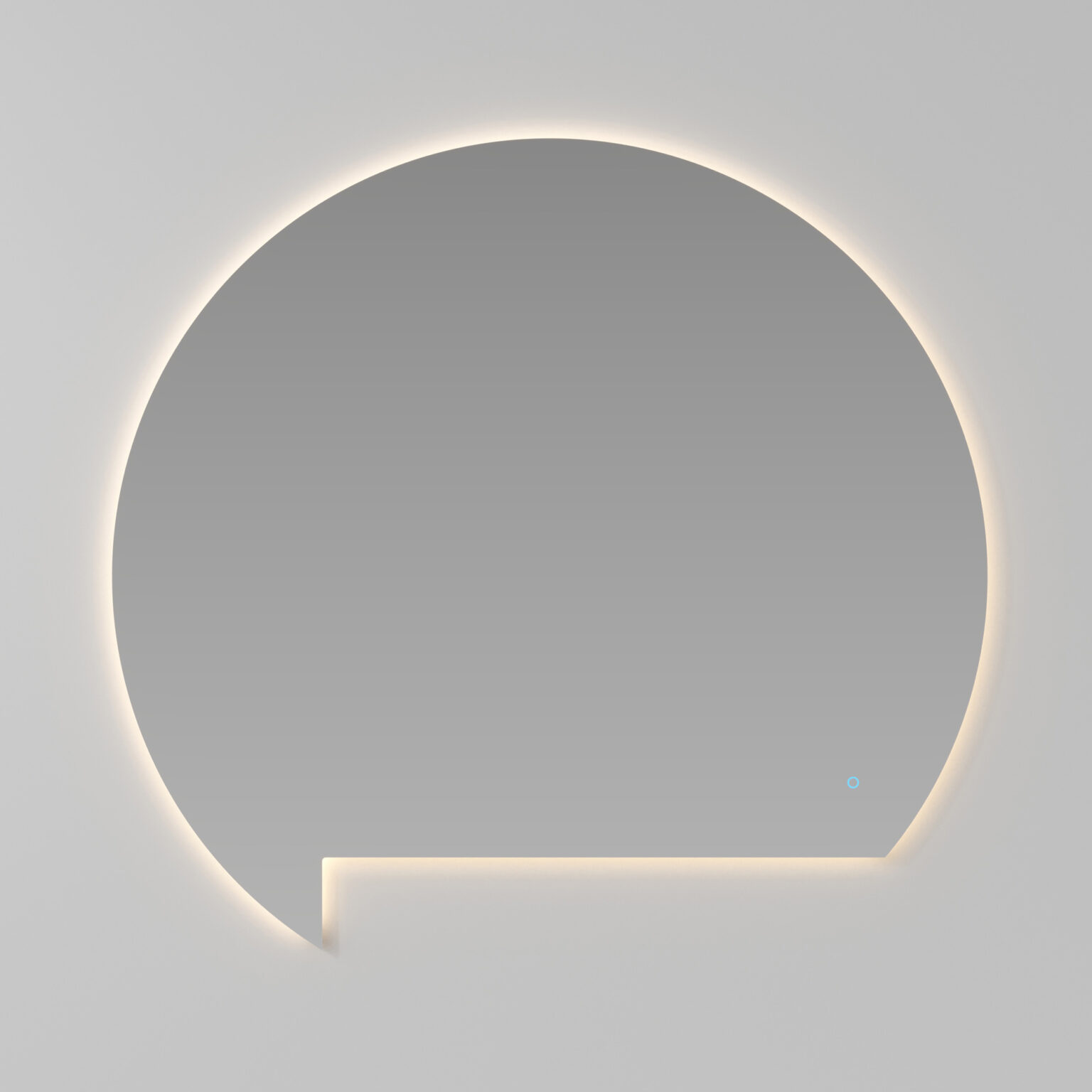 Espejo Lunetta de forma perfilada y con extremo del borde redondo brillante. Configurable a la dcha. o izqda. Retroiluminado de led. IP55 – 3000/4000 K Compatible sólo con lámparas Arko 140 y Scarlet. 31,5 W – 919 lm