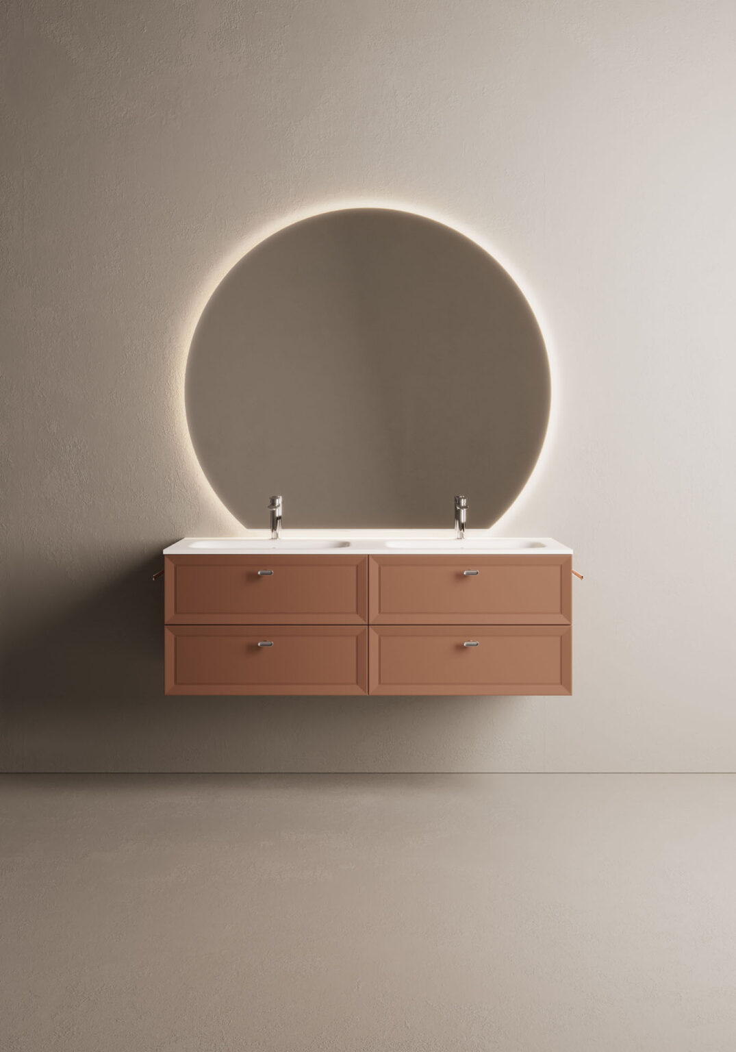 Espejo Platea de forma perfilada y con extremo del borde redondo brillante. Retroiluminado de led. IP55 – 3000/4000 K Compatible sólo con lámparas Arko 140 y Scarlet. 30,1 W – 919 lm