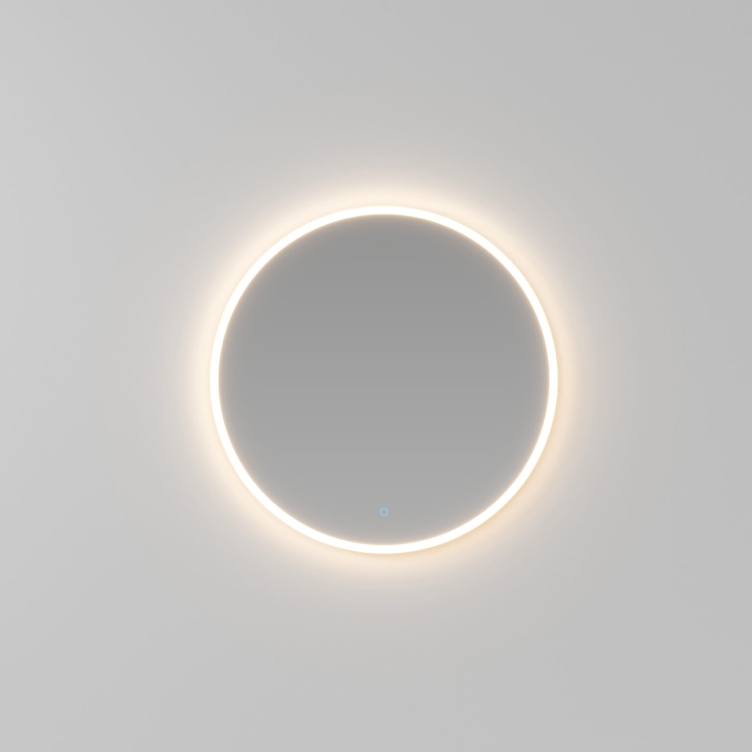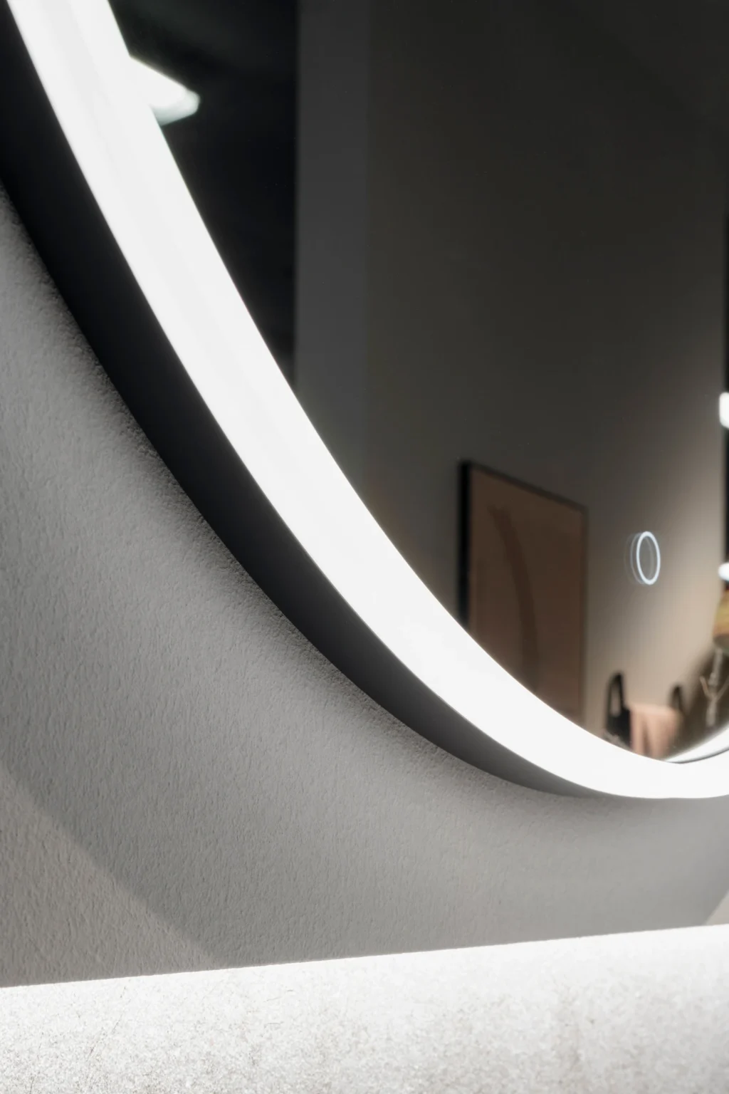 Espejo Eclissi con iluminación perimetral, encendido táctil ON/OFF y regulación de la temperatura de color 2700/6000 K. IP44 De 17 a 29 W – De 1500 a 2600 lm