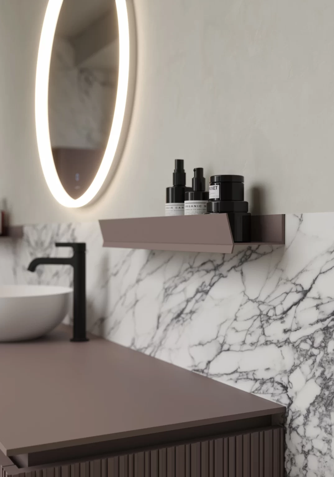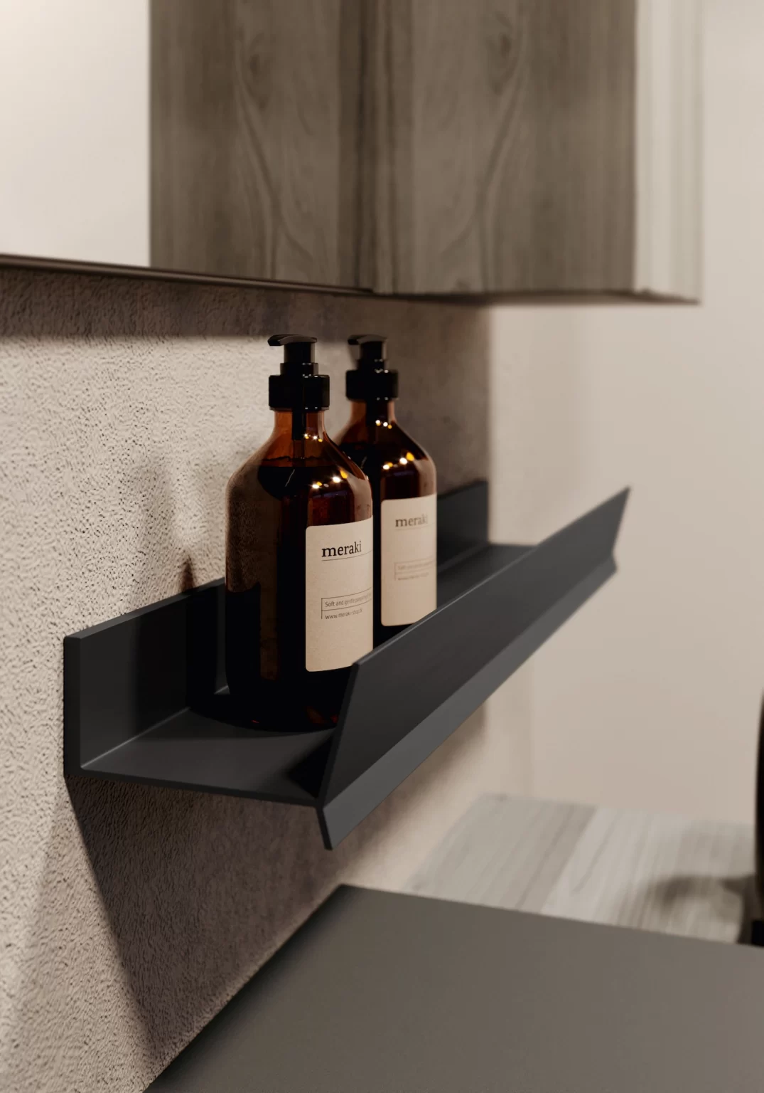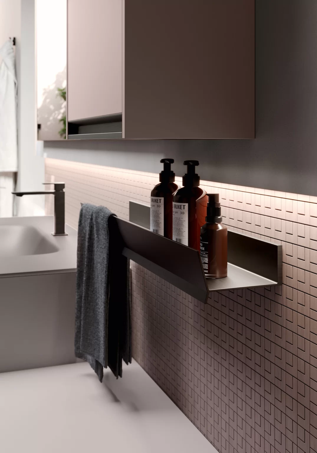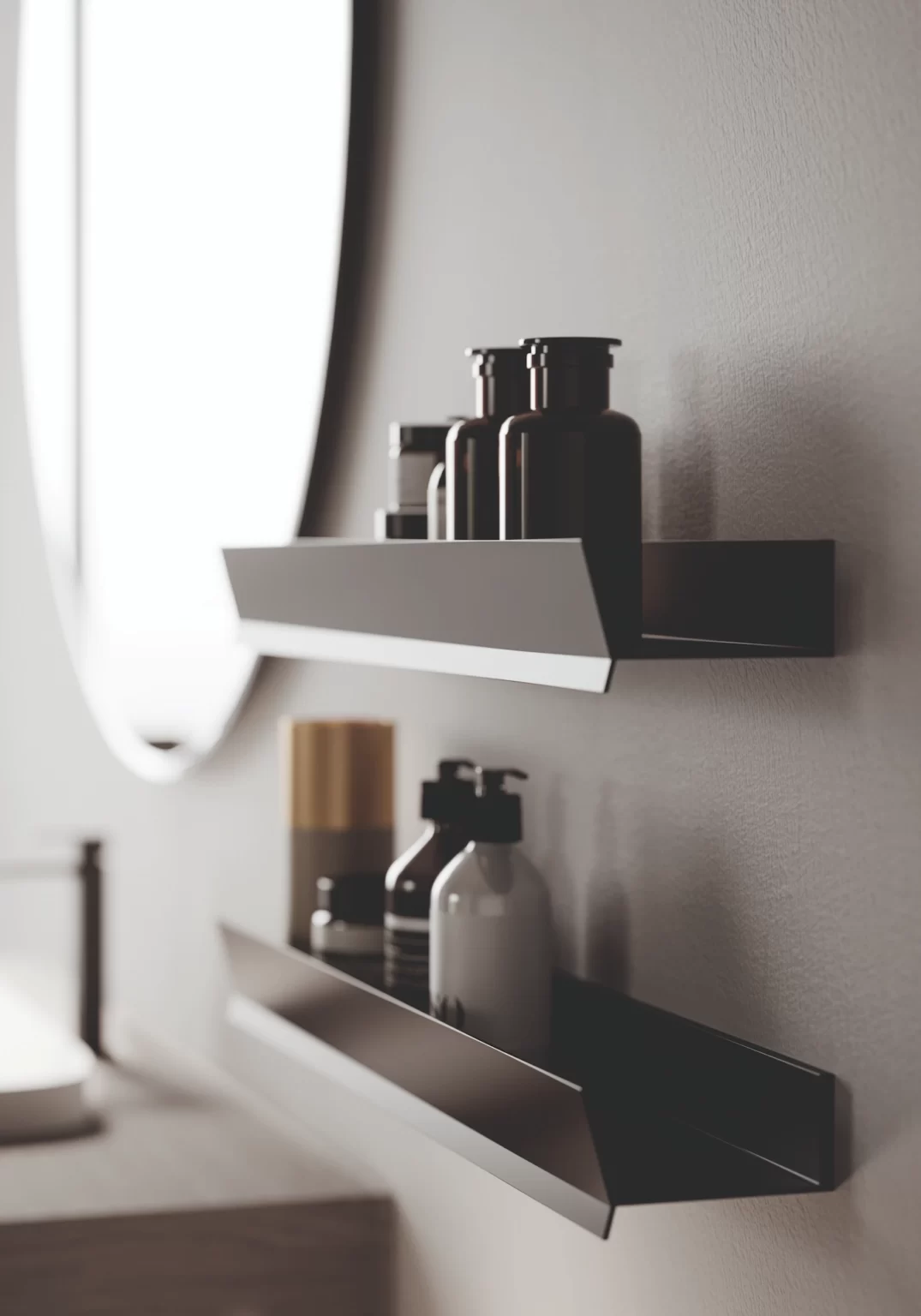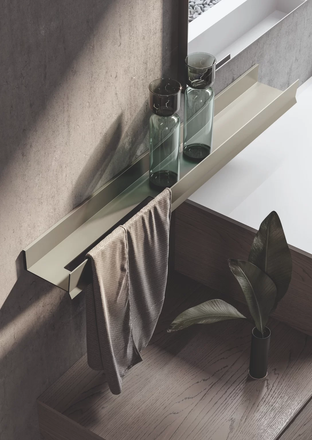 Estante con/sin toallero de aluminio, disponible en negro, inox y en los colores mate y Metal Color del muestrario de Ideagroup.