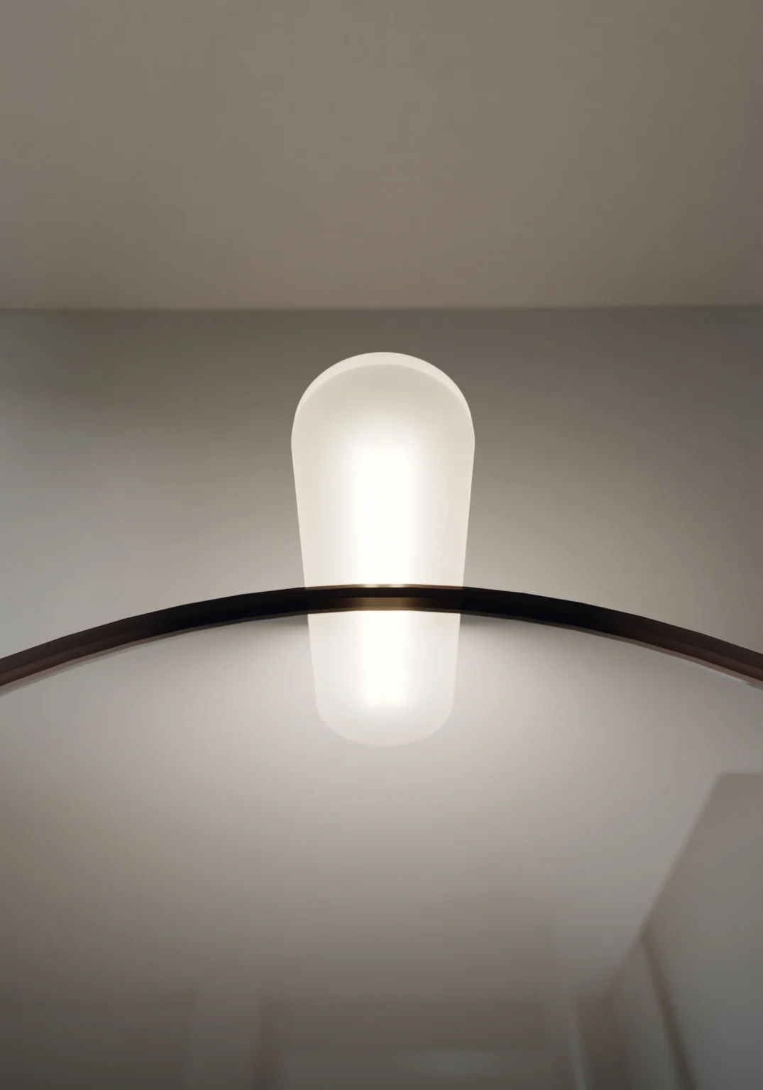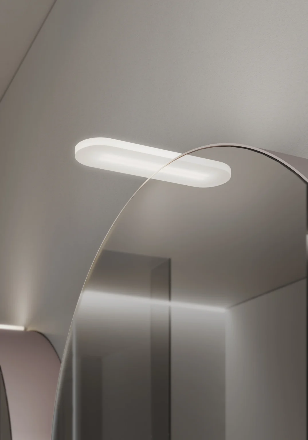 Lámpara Muse de Metacrilato (con soporte de acero), instalable en los espejos-contenedor Arena y Giotto. Equipada con iluminación de led.