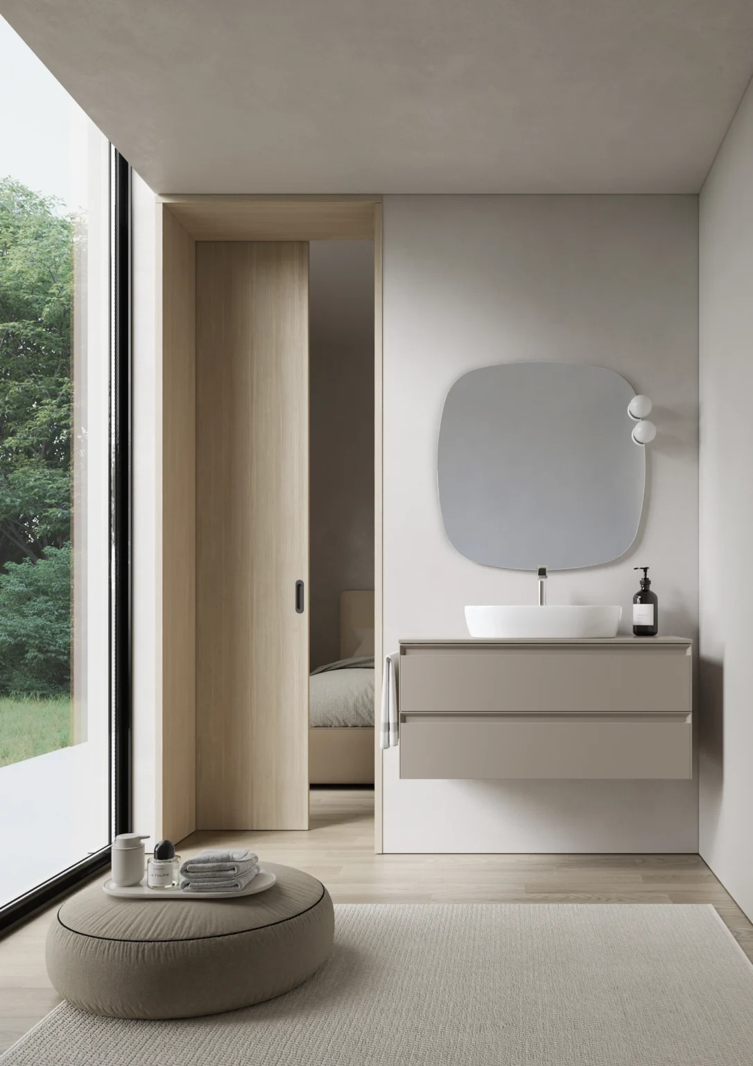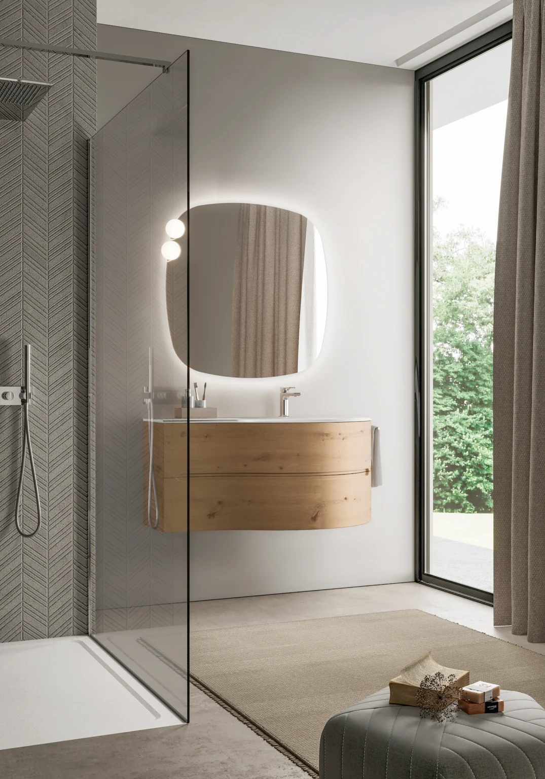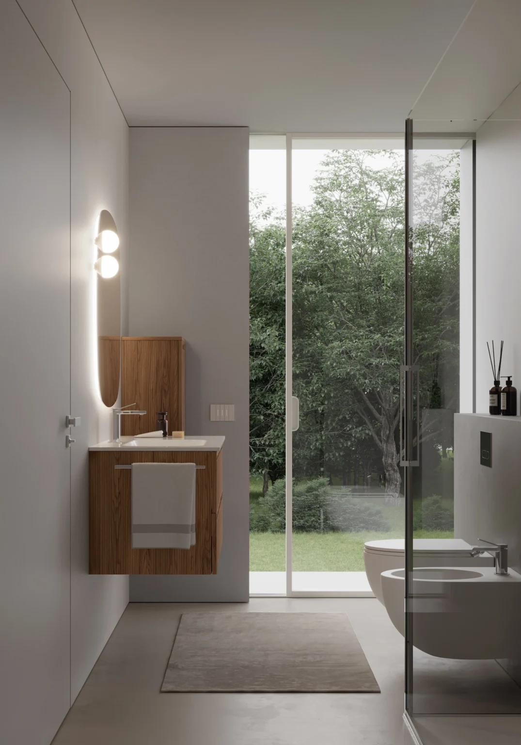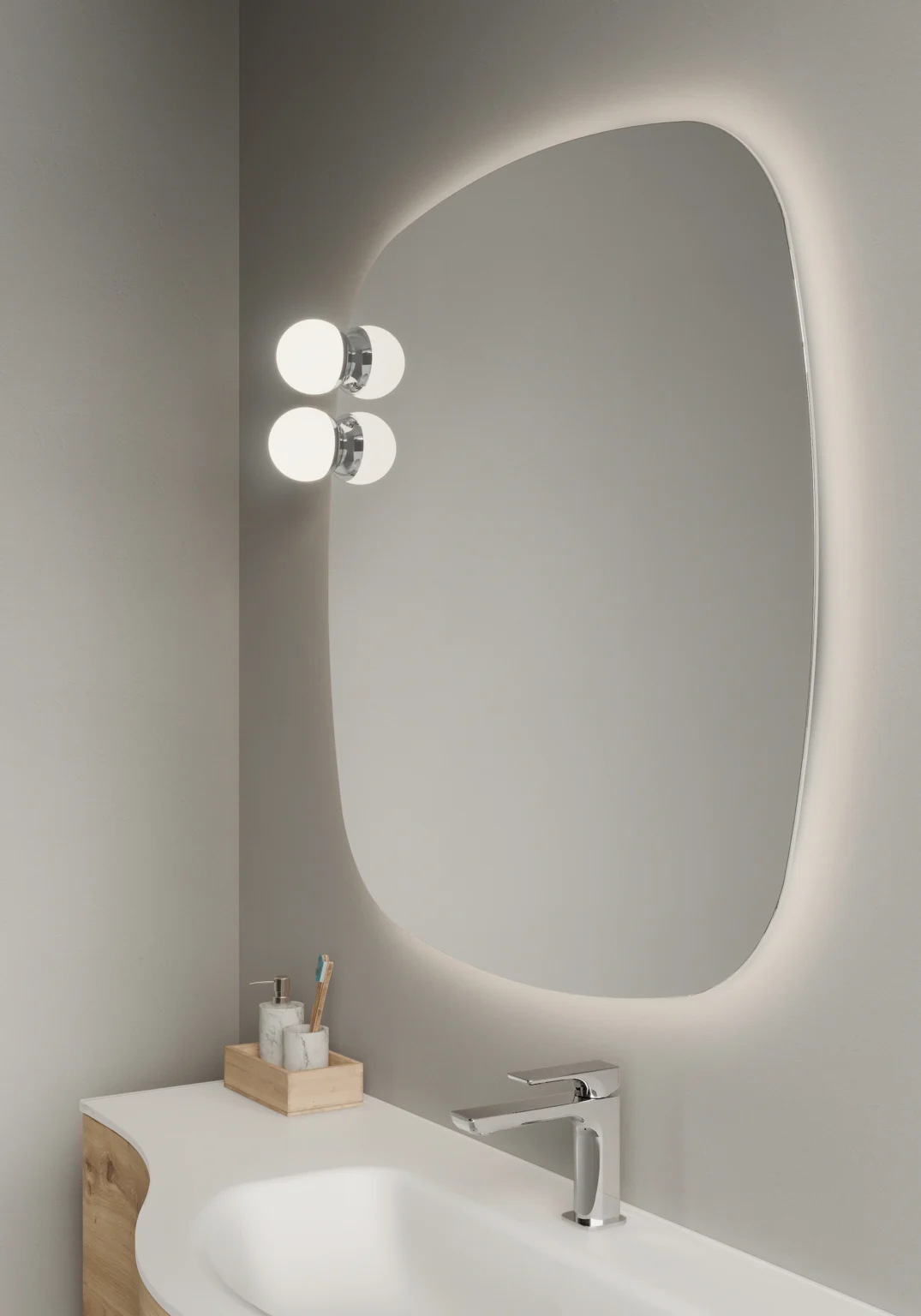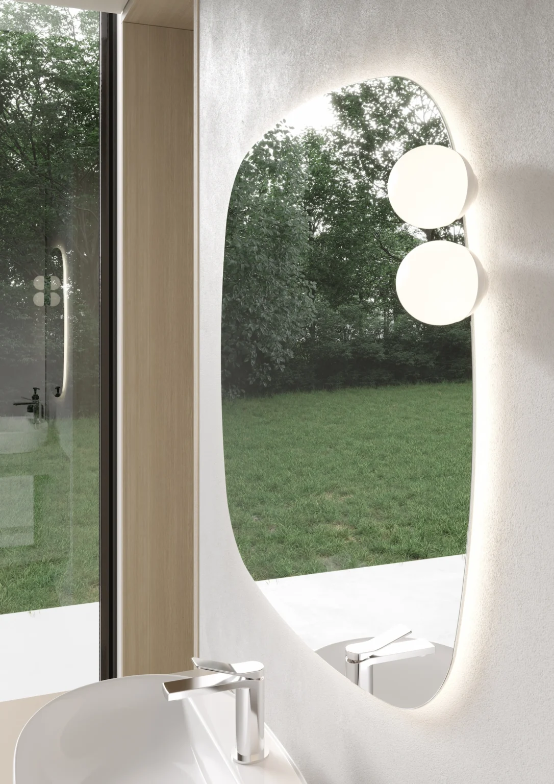 Lámpara Scarlet instalable en los espejos Move, Flow, Platea, Lunetta y Ninfea. Equipada con iluminación de led. IP44 – 3000/4000 K 5 W – 450 lm