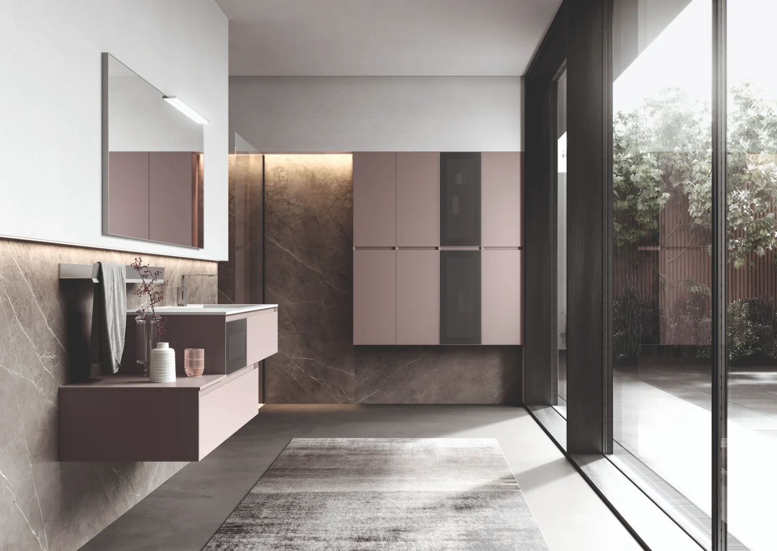 Lámpara Symply instalable en los espejos Elma, Elmas, Lag/Lan y Sat/Sal. Equipada con iluminación de led. IP44 – 4000 K De 10 a 20 W – De 930 a 1475 lm