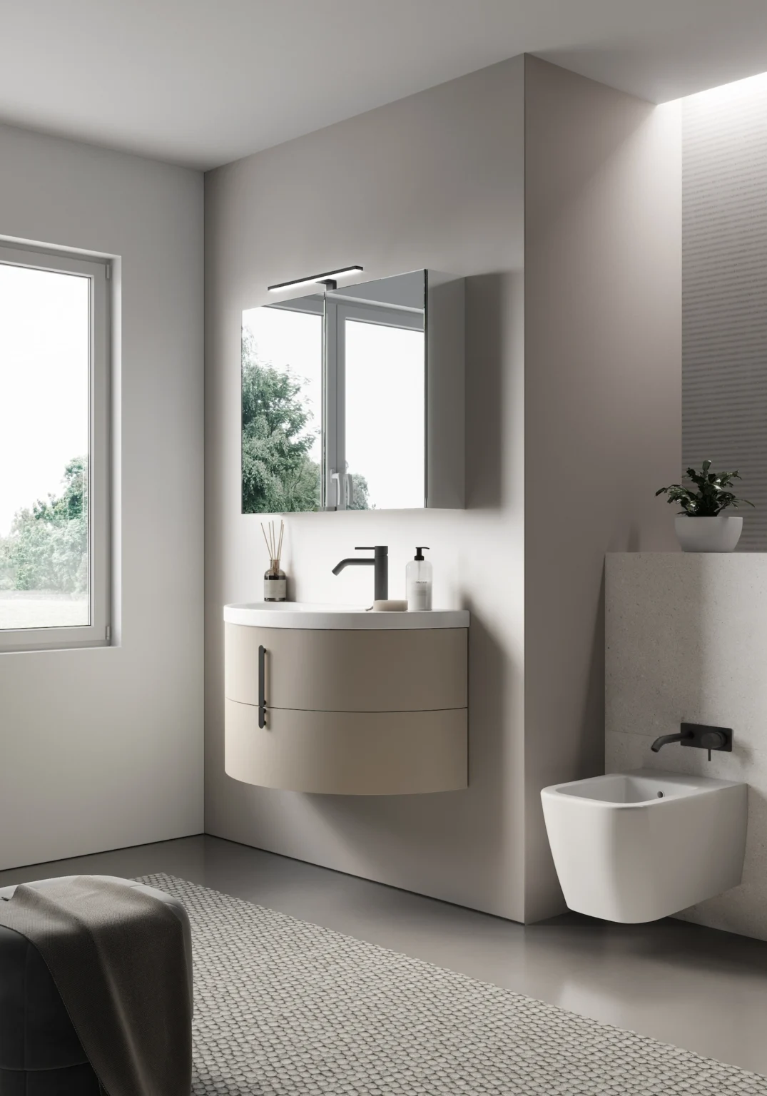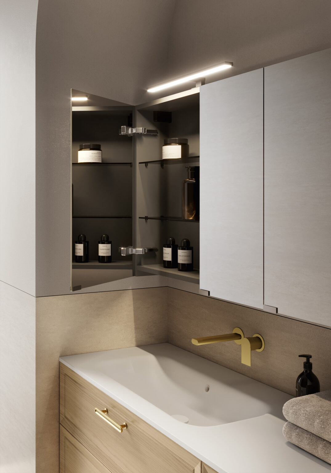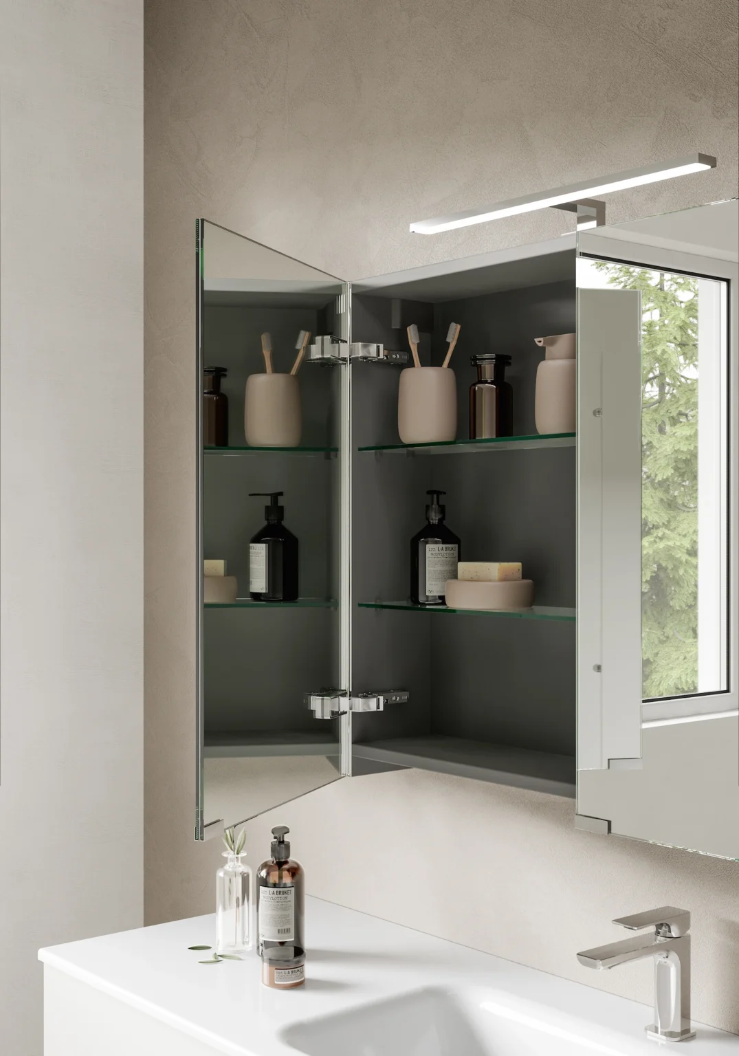 Lámpara Web instalable en los espejos Elma, Elmas, Sat/Sal y en los muebles altos con espejo de doble cara. Equipada con iluminación de led.