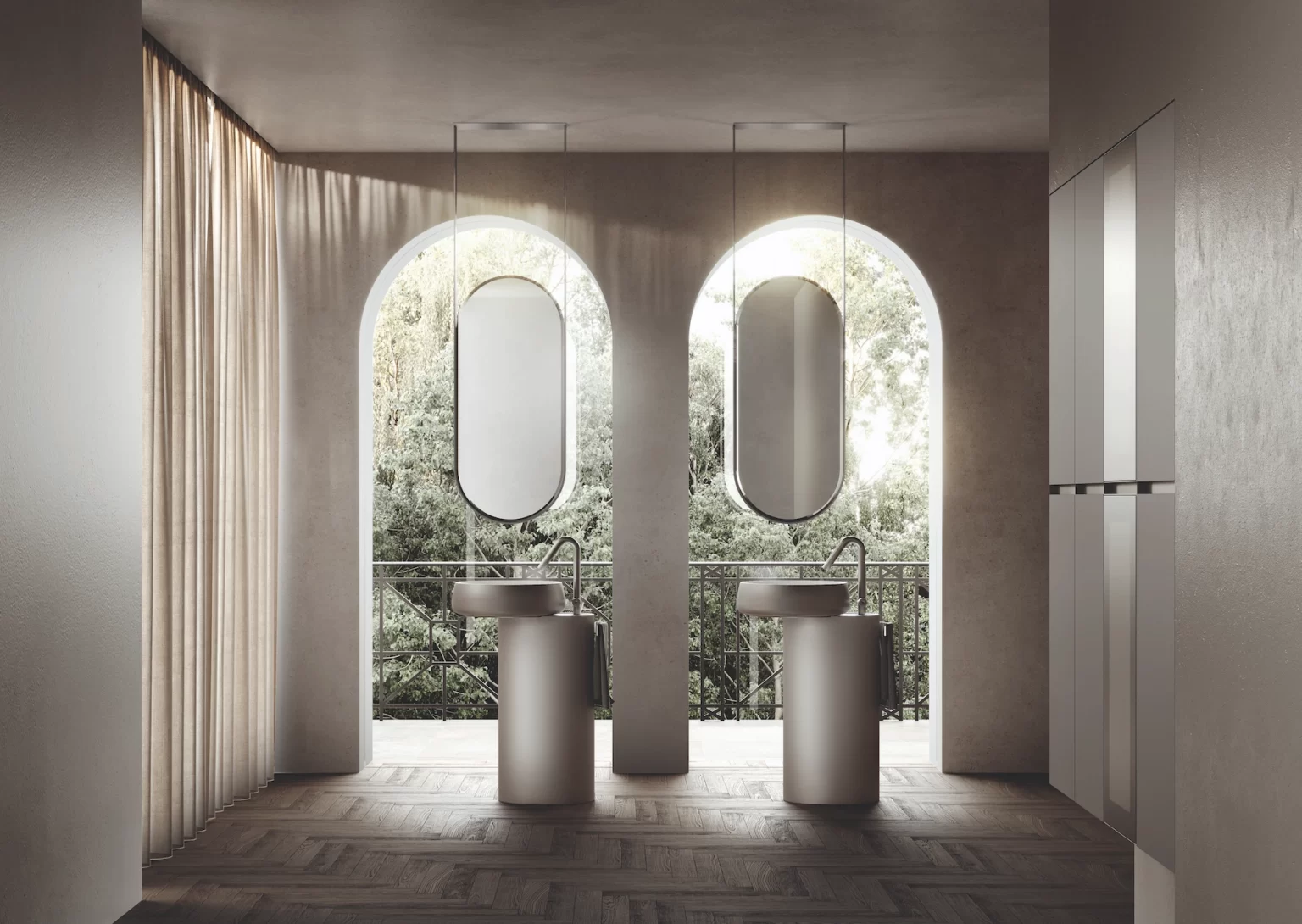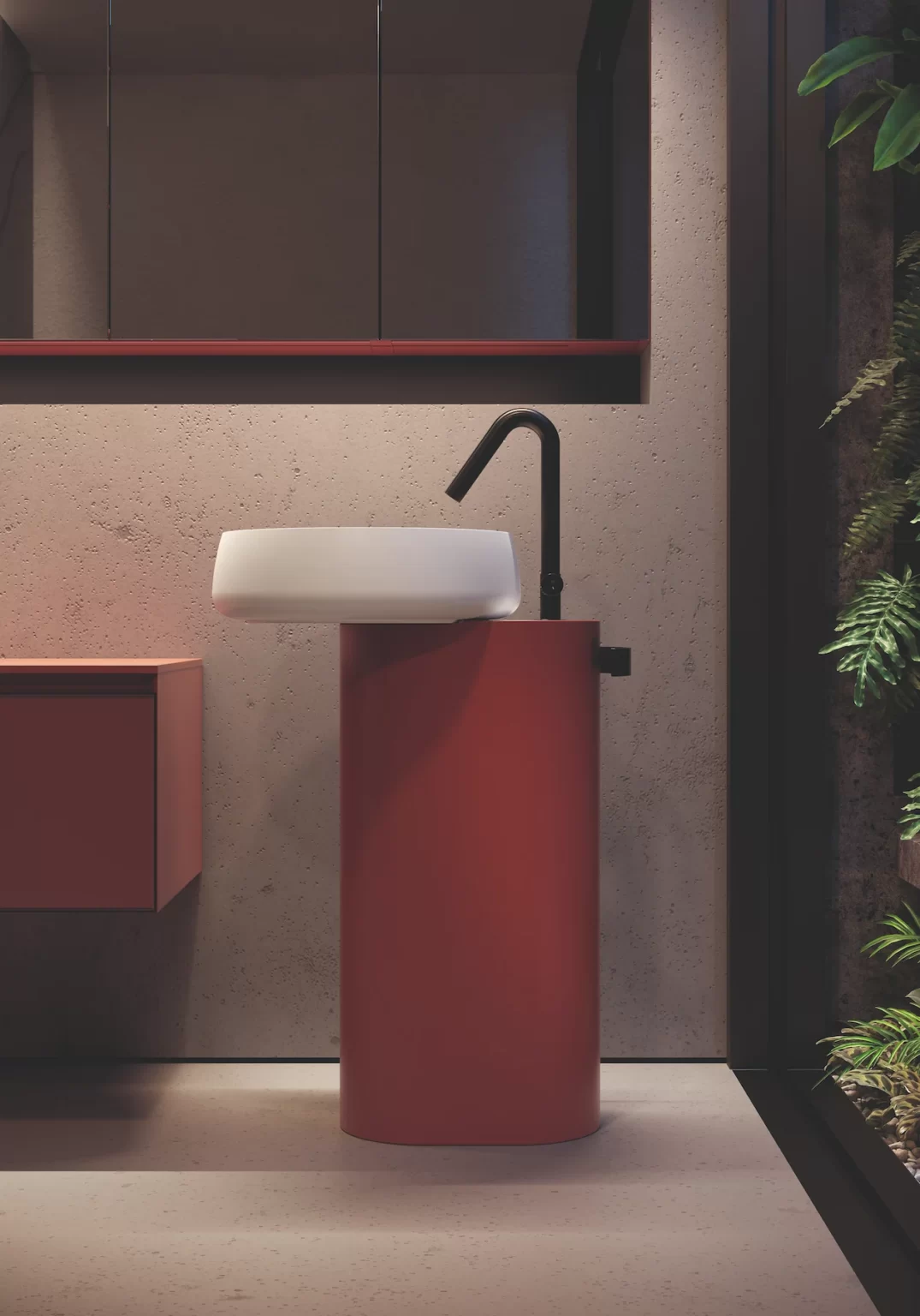Lavabo independiente Beauty, de Cristalplant® blanco mate, coloreado exteriormente o completamente coloreado en los colores mate y Metal Colour Ideagroup (colores Metal sólo para exterior). Con orificio para grifo, sin rebosadero.