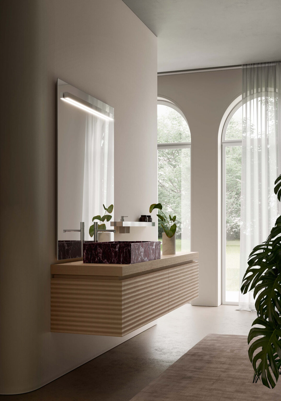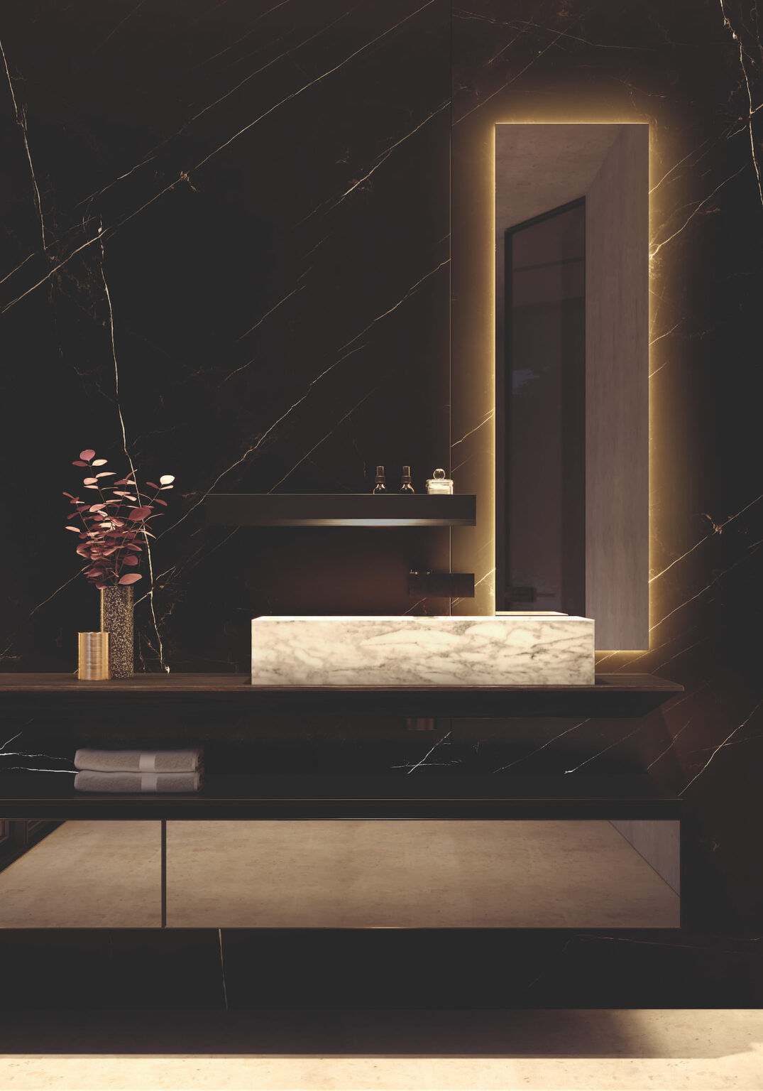 Los mármoles naturales son rocas calcáreas naturales, formadas por carbonatos de calcio, silicio, hierro y otros minerales: su combinación determina variedades cromáticas y estructurales. Las pequeñas imperfecciones y las diferencias de tonalidades o consistencia de la superficie deben considerarse cualidades valiosas y no defectos, características intrínsecas de la materia prima.