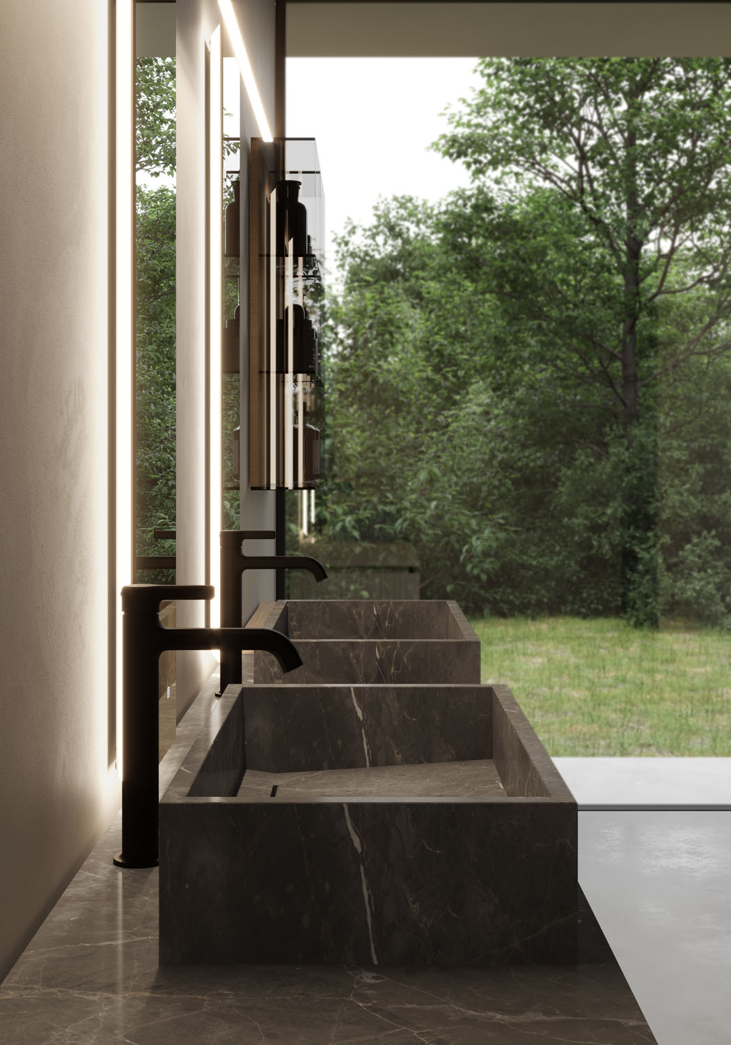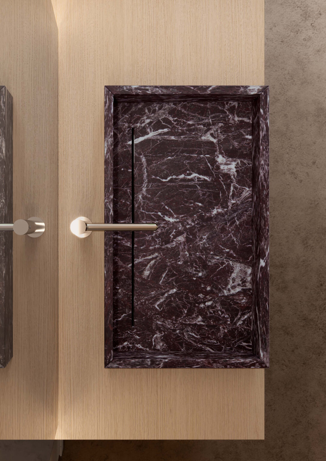 Lavabo Slide sobre encimera, de mármol natural brillante y mate, sin rebosadero.