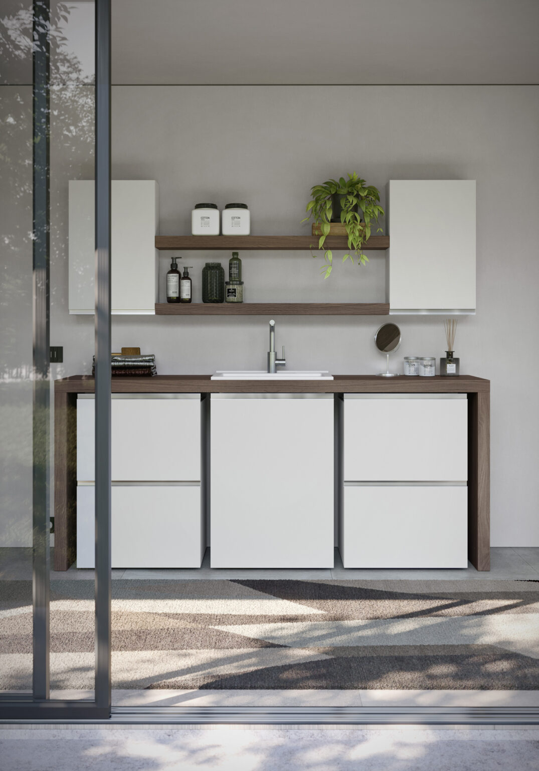 Las piletas de lavar de Mineralsolid/Mineralux están compuestas de cargas naturales (carbonatos de calcio y trihidratos de aluminio) y resinas de poliéster. La película de gelcoat que recubre la superficie es un poliéster de acrilato que otorga un acabado de efecto mate.