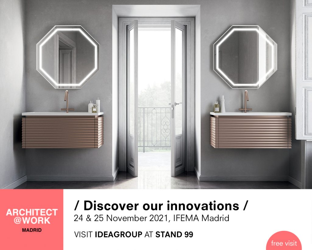 Los días 24 y 25 de noviembre de 2021, estaremos presentes en Madrid en la feria exclusiva para arquitectos, interioristas y profesionales del sector ARCHITECT@WORK. Una oportunidad para reencontrarnos y conocer las propuestas de diseño, formas y materiales de Ideagroup para el mundo del mobiliario de baño.