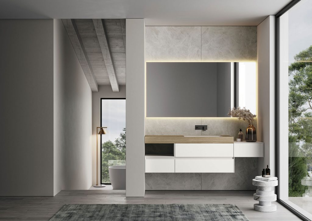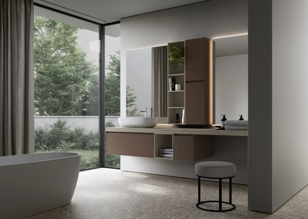 La colección Nyù representa la esencia de los muebles de baño elegantes y discretos, combinando materiales refinados y colores atractivos para conseguir muebles de baño refinados y de clase.
