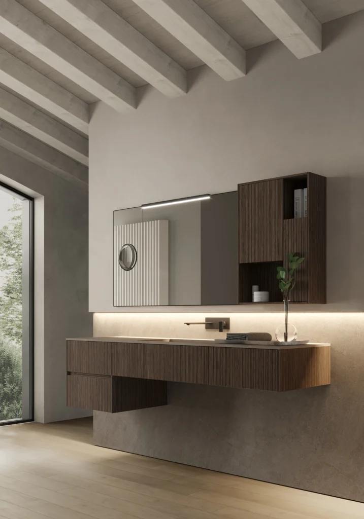 Nyù es la colección de muebles de baño elegantes y discretos, que se adaptan a varios estilos y conceptos de la vida contemporánea. El cuarto de baño, a través de la equilibrada combinación de materiales refinados y colores atractivos, sigue, en cada detalle, las inspiraciones de la casa y de quienes allí viven.