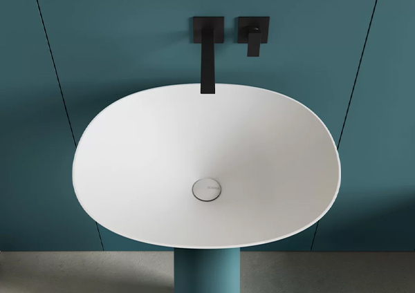 Royal es el nuevo lavabo independiente de Cristalplant® de belleza delicada, con un lavabo ovoide de bordes delgados y una base cónica que se estrecha hacia arriba, una solución de diseño para un baño contemporáneo y elegante. Fabricado en Cristalplant, un material conocido por su belleza, similar a la piedra natural con un efecto suave al tacto, está disponible en blanco mate, lacado exteriormente o lacado exterior e interiormente.